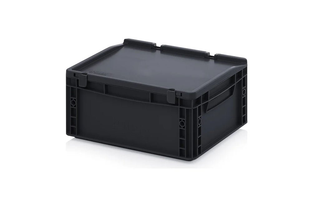 Антистатическая тара (контейнер) с крышкой на шарнире предназначен для перевозки и хранения электрооборудования. Контейнер с ESD-защитой обеспечивает дополнительную защиту содержимого. Крышка и шарниры изготовлены из такого же антистатического материала, что и контейнер. Осуществляется защита от электростатического разряда и сброс уже накопленного заряда. Ящики данной линейки надежно обеспечивают защиту электронных компонентов от внешних статических и электромагнитных полей на этапе производства, при хранении и транспортировке; изготовление из высококачественного токопроводящего материала гарантирует ударопрочность и устойчивость к нагрузкам; при необходимости возможна установка продольных и поперечных разделителей; удельное объемное сопротивление 10³ < 10¹⁰ Ом/см.