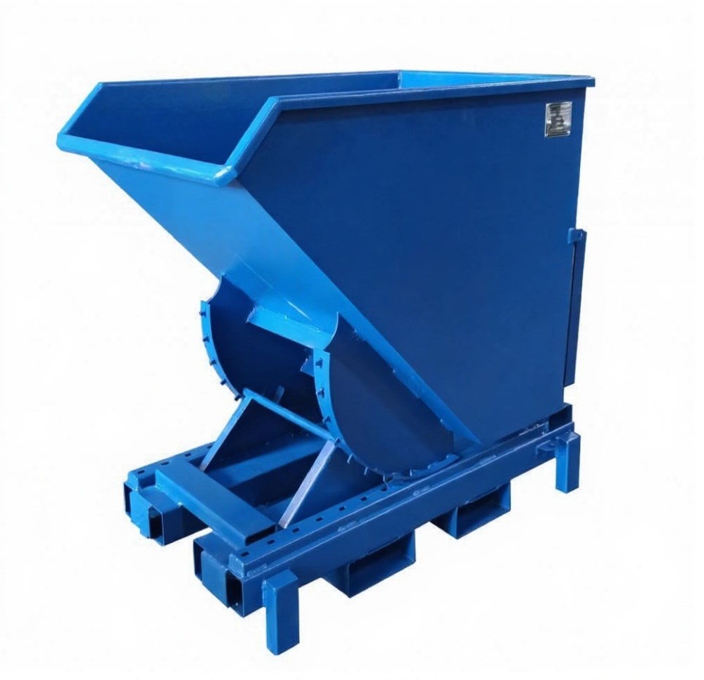 Контейнер "К-700ВН" саморазгружающийся с боковым захватом предназначен для накопления и перемещения твердых веществ и материалов. Контейнер может комплектоваться мобильной платформой. На платформу устанавливаются четыре колесные опоры в зависимости от нагрузки на контейнер. Конструкция платформы контейнера имеет карманы 200х80 мм с двух сторон для возможности подъема контейнера грузоподъемной техникой. Установлена блокировка против непреднамеренного соскальзывания и опрокидывания контейнера. Выгрузка контейнера производится оператором в ручную нажатием на рычаг либо не посредственно из кабины автопогрузчика при помощи троса. При дополнительной комплектации контейнера двойным дном и сливным краном возможно использование контейнера для накопления металлической стружки.