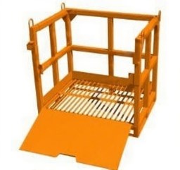 Сварной каркас из металлической профильной трубы 40х40х2 мм. Дно выполнено из прутка арматуры Ф 12 мм, что исключает накопление снега внутри контейнера. Откидной трап, изготовленный из металлического листа 3 мм, легко и надежно фиксируется в вертикальном положении с двух сторон. Откидная перекладина со стопором и трап с одной стороны служат ограждающим устройством при транспортировки контейнера.