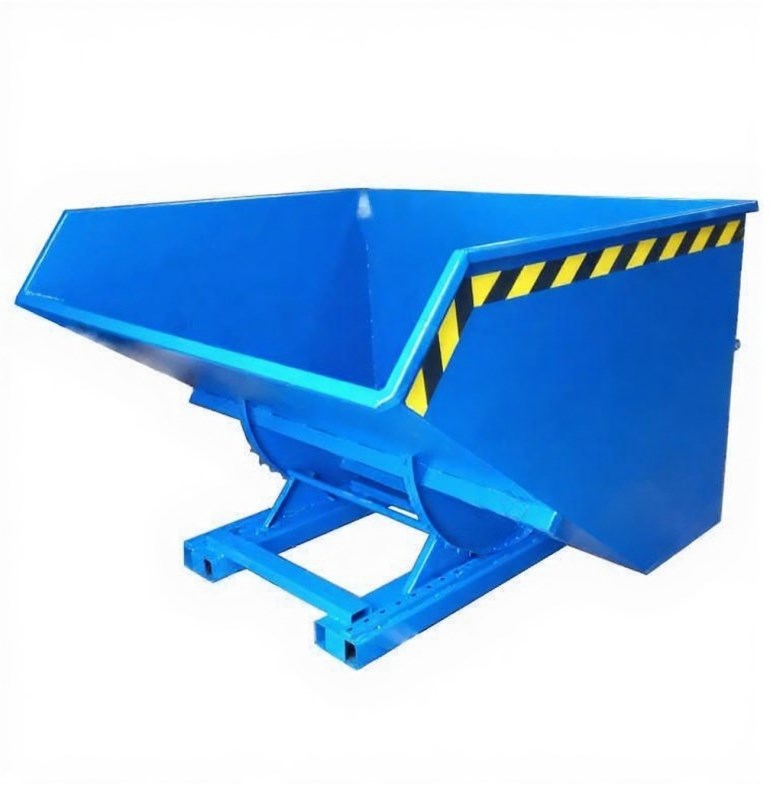 Контейнер "К-3000" самоопрокидывающийся предназначен для накопления и перемещения твердых веществ и материалов. Контейнер может комплектоваться мобильной платформой. На платформу устанавливаются четыре колесные опоры в зависимости от нагрузки на контейнер. Конструкция платформы контейнера имеет карманы 200х80 мм для возможности подъема контейнера грузоподъемной техникой. Установлена блокировка против непреднамеренного соскальзывания и опрокидывания контейнера. Самоопрокидывание контейнера производится путем освобождения механизма опрокидывания оператором из кабины погрузчика при помощи тросовой тяги. При дополнительной комплектации контейнера двойным дном и сливным краном возможно использование контейнера для накопления металлической стружки.