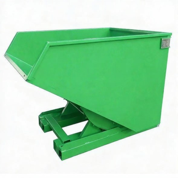 Контейнер "К-750" самоопрокидывающийся предназначен для накопления и перемещения твердых веществ и материалов. Контейнер может комплектоваться мобильной платформой. На платформу устанавливаются четыре колесные опоры в зависимости от нагрузки на контейнер. Конструкция платформы контейнера имеет карманы 200х80 мм для возможности подъема контейнера грузоподъемной техникой. Установлена блокировка против непреднамеренного соскальзывания и опрокидывания контейнера. Выгрузка контейнера производится оператором в ручную нажатием на рычаг либо не посредственно из кабины автопогрузчика при помощи троса. При дополнительной комплектации контейнера двойным дном и сливным краном возможно использование контейнера для накопления металлической стружки.