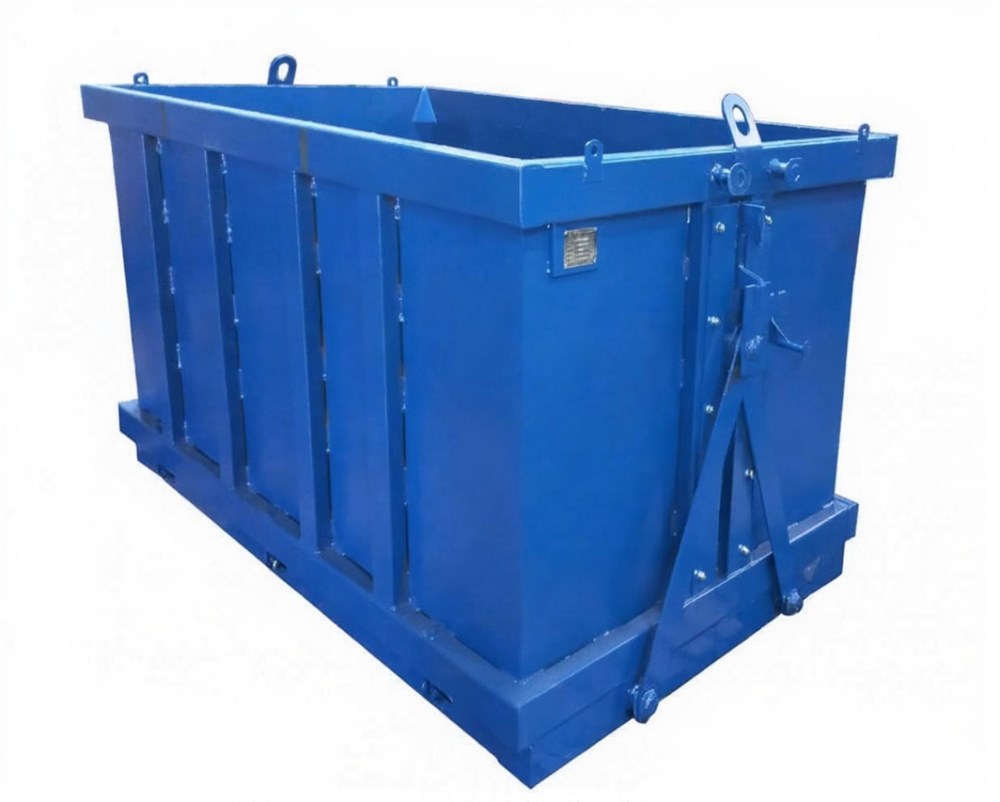 Контейнер с двойным откидным дном предназначен для накопления и перемещения твердых сыпучих грузов. Конструкция контейнера обеспечивает возможность подъема контейнера краном для перемещения и выгрузки груза. Открытие дна контейнера производится путем зацепления строп с нижних на верхние кронштейны контейнера.