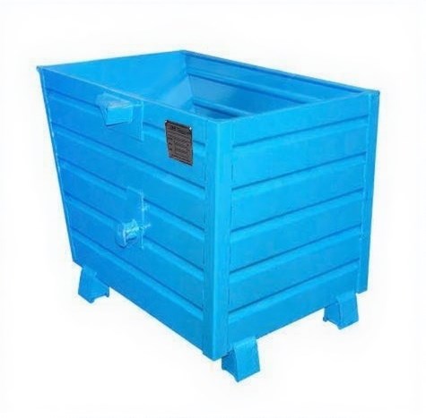 Контейнер саморазгружающийся "ТС-240" предназначен для накопления и перемещения сыпучих грузов. Преимущество контейнера в его компактной конструкции и работы оператора не выходя из кабины погрузчика для зацепления и выгрузки контейнера, что экономит время при интенсивной работе. Для подъема и выгрузки контейнера грузоподъемной техникой применяется траверса которая обеспечивает надежный захват и выгрузку контейнера. Блокировка против непреднамеренного соскальзывания в вил погрузчика установлена на траверсе. Выгрузка контейнера может производится на любой высоте дистанционно с помощью троса с сидения погрузчика. При герметичном исполнении возможно установить кран для слива СОЖ, защищенное металлической сеткой.