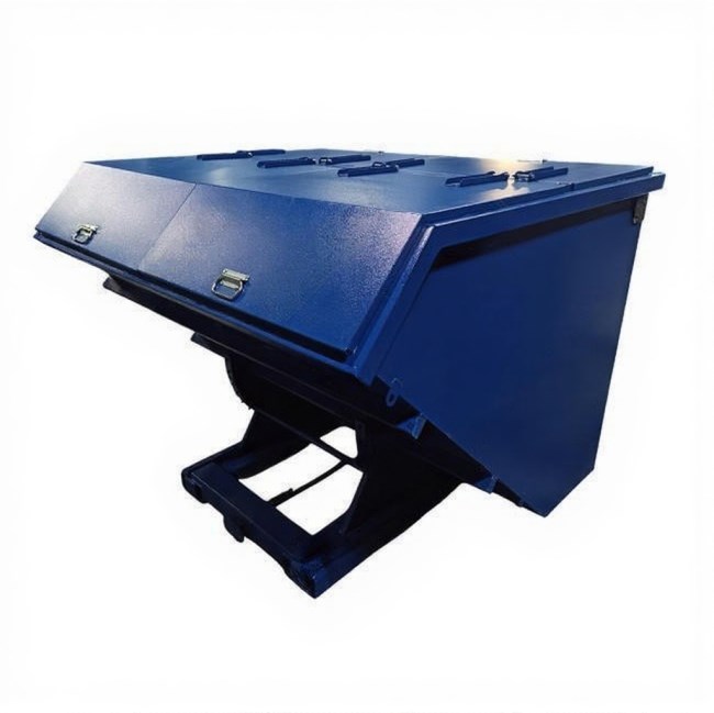 Контейнер "С-3200кр" самоопрокидывающийся с крышкой имеет цельносварную конструкцию. Предназначен для накопления и перемещения твердых сыпучих веществ и материалов. Контейнер может комплектоваться мобильной платформой. На платформу устанавливаются четыре колесные опоры в зависимости от нагрузки на контейнер. Конструкция платформы контейнера имеет карманы 200х80 мм для возможности подъема контейнера грузоподъемной техникой. Установлена блокировка против непреднамеренного соскальзывания и опрокидывания контейнера. Выгрузка контейнера производится путем освобождения механизма опрокидывания нажатием кнопки, расположенной в передней части платформы контейнера, о борт принимающего объема. Крышка защищает груз от раздувания ветром и частично от попадания прямых осадков. При дополнительной комплектации контейнера двойным дном и сливным краном возможно использование контейнера для накопления металлической стружки. Поставляется в собранном виде.
