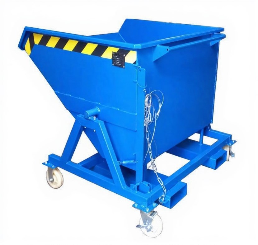 Контейнер "Ю-700" предназначен для накопления, хранения и перемещения сыпучих грузов. Конструкция данного контейнера позволяет перемещать его не только погрузчиком но и штабелером. При опрокидывании кузова передняя кромка контейнера не опускается ниже уровня колесных опор. Это удобно при выгрузке контейнера без использования подъемной техники, так же безопасно при загрузке продукта в смеситель (и т.д.) не повредив внутренние механизмы. При дополнительной комплектации сливным краном используется для накопления металлической стружки и отделения СОЖ. Возможно исполнение контейнера на мобильной платформе при дополнительной установке колесных опор. Блокировка против непреднамеренного соскальзывания и опрокидывания. Выгрузка контейнера может производится оператором на любой высоте дистанционно, с помощью троса, с сидения погрузчика. Конструкция контейнера позволяет иметь малую длину. Окраска контейнера высокотемпературной полимерной порошковой краской. Цвета: Синий (RAL 5010), Красный (3020), Зеленый (6005), Оранжевый (2004), Серый (7040), Черный или в любой цвет по желанию заказчика. Поставляется в собранном виде.