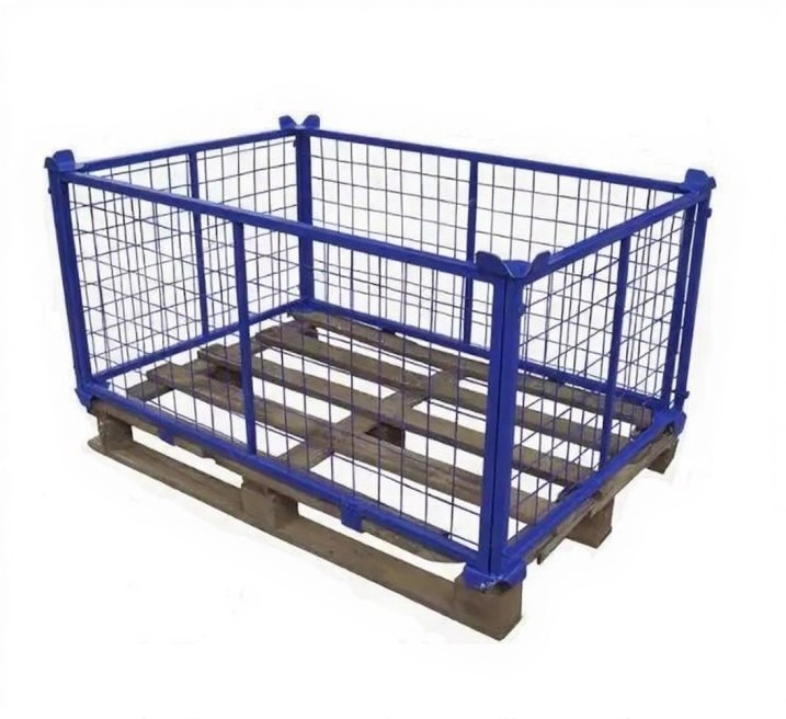 Ограждение сетчатое для паллета (поддона) окрашено полимерно-порошковой краской, цвет Синий RAL 5010 или по желанию заказчика.