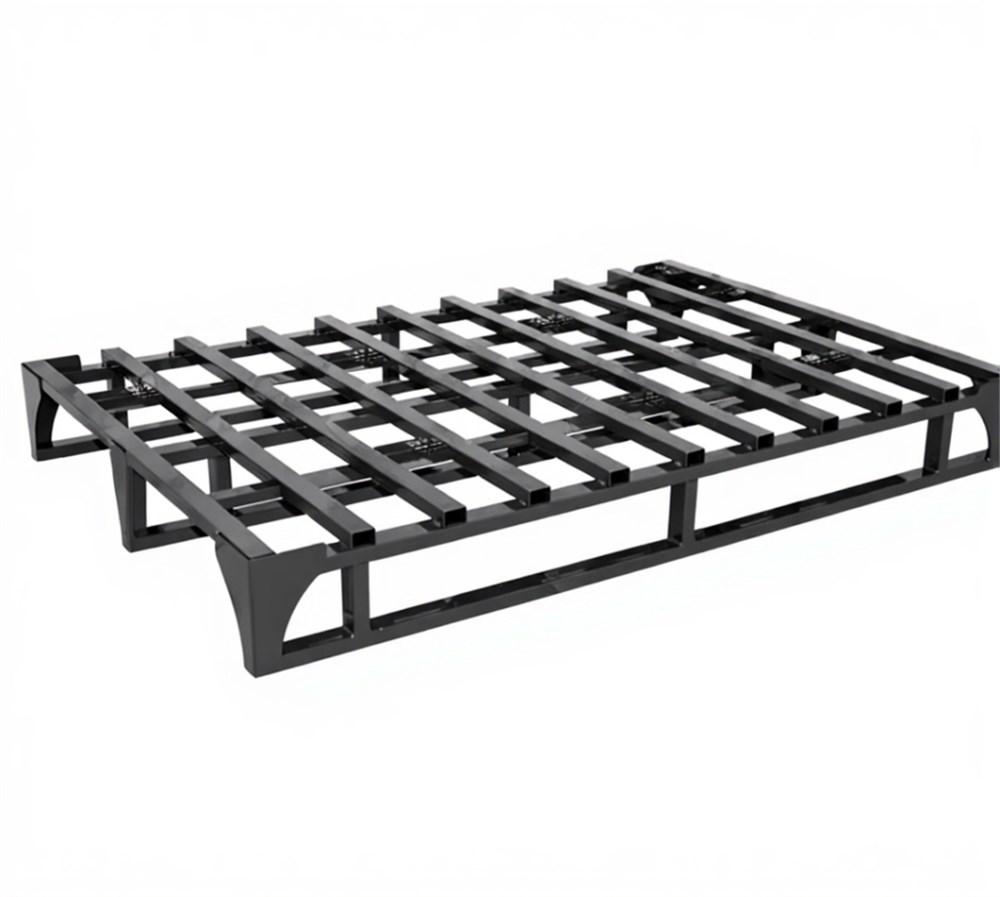 При необходимости можно штабелировать друг на друга. Паллет (поддон) изготовлен из стальной профильной трубы 25х25 мм. Окрашен полимерной порошковой краской цвет RAL 5010. Поставляется в собранном виде.