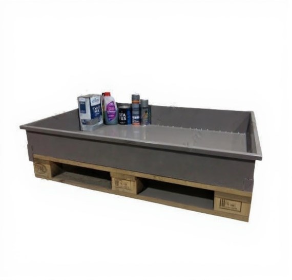 Поддон металлический для канистр или малой тары изготовлен из металлического листа. Устанавливается на металлический или деревянный паллет. Объем поддона составляет 192 литра. Поставляется в собранном виде.