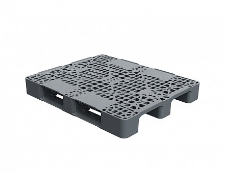 Поддон перфорированный пластиковый Дигрус размером 1200 х 1000 x 150 мм, выполнен из прочного пластика серого цвета и оснащен тремя специальными опорными полозьями. Подходит для складирования, хранения и транспортировки различных грузов внутри помещений и на открытых площадках.