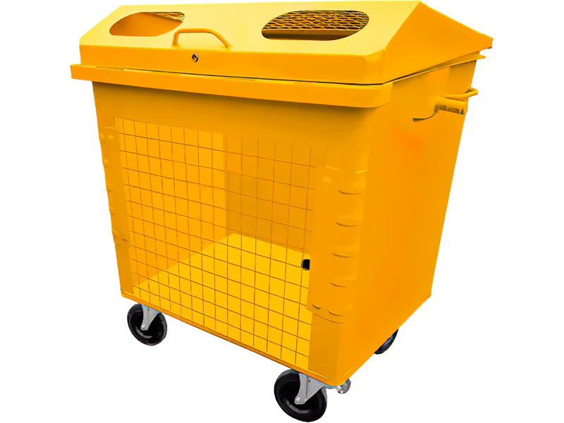 Объем: Контейнер имеет объем 1100 литров, позволяющий разместить большое количество материала.