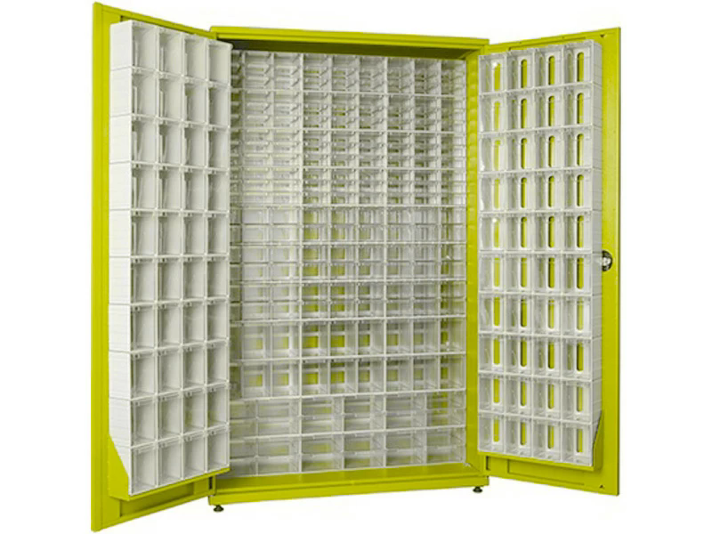 Огромное число ящиков (275 шт.) распределяется по всей высоте шкафа, создавая удобную систему классификации и распределения хранящихся предметов.