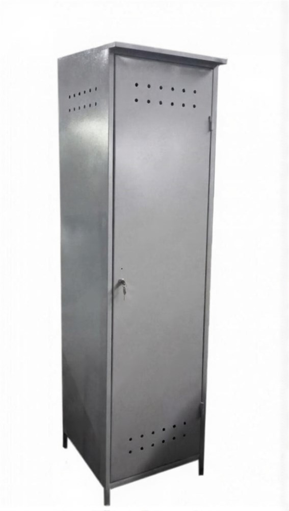 Металлический шкаф для хранения газового баллона изготовлен из листового металла. Шкаф предназначен для хранения баллонов (с кислородом, гелием, ацетиленом, углекислотой) диаметром 230 мм. Шкаф окрашен полимерной порошковой краской. Шкаф для баллона поставляется в собранном виде.
