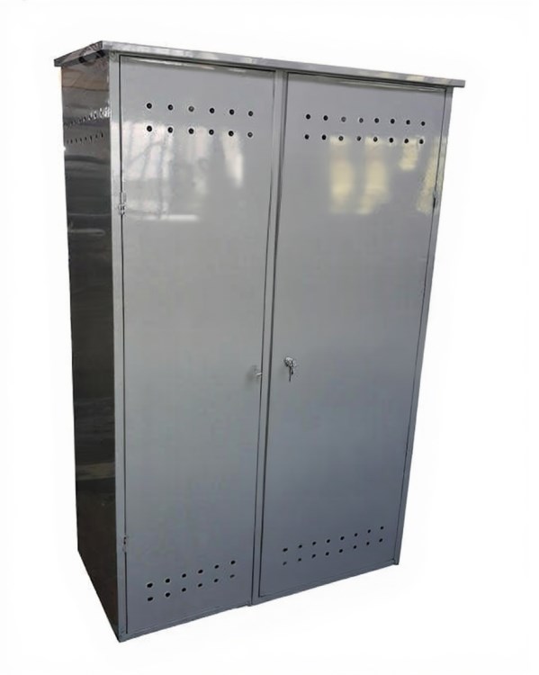Металлический шкаф для хранения газовых баллонов изготовлен из листового металла. Шкаф предназначен для хранения баллонов (с кислородом, гелием, ацетиленом, углекислотой) диаметром 230 мм. Шкаф окрашен полимерной порошковой краской. Шкаф для баллонов поставляется в собранном виде.