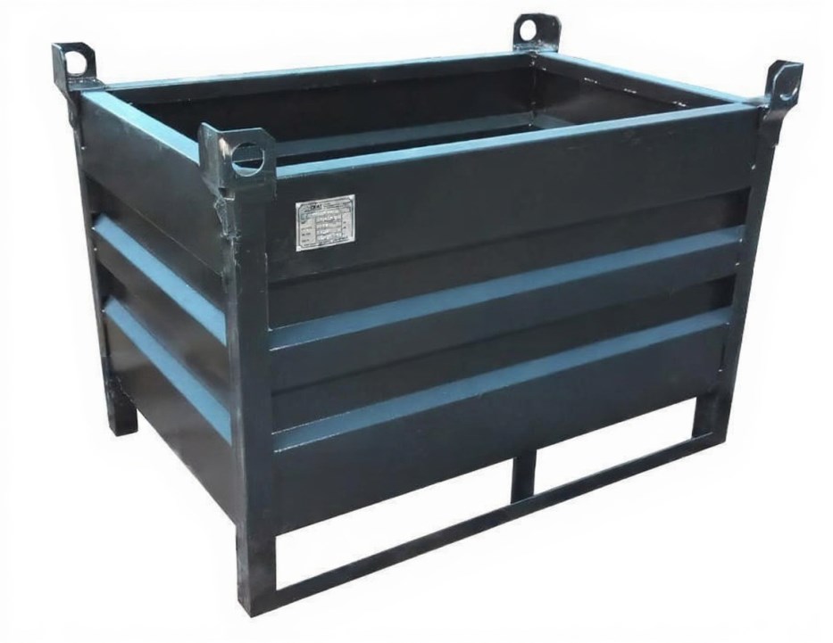 Тара металлическая производственная ГОСТ 14861-91 (размеры габаритные 840х1240х750 мм) - цельносварная металлическая конструкция. Стальная тара для производственных процессов, рассчитанная на сыпучие и тяжелые материалы. Усиленный корпус, стойкое покрытие и возможность установки в три яруса делают её практичным решением для склада и производственных цехов. Тара с грузом перемещается погрузчиком (захват рогами погрузчика с длинной стороны тары для лучшей фиксации от опрокидывания), штабелером, гидравлической тележкой или подъемным краном ( подъем за четыре кронштейна расположенных по углам в верхней части тары, угол между строп не должен превышать 90 градусов). Тара штабелируется друг на друга, что позволяет значительно сократить складское пространство для хранения без применения стеллажей и снизить транспортные расходы. Окрашена металлическая тара полимерной порошковой краской (Синий RAL 5005). Возможен окрас в цвет по желанию заказчика, а так же нанесение дополнительных надписей. На борт тары закреплен шильдик с информацией от производителя ЗАО «Дигрус» о таре. На каждое изделие (тару) выдаётся паспорт.