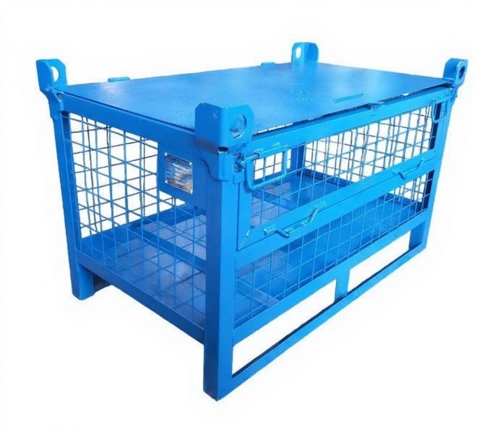 Тара металлическая сетчатая с откидным бортом и крышкой предназначена для сбора, хранения, транспортировки, разгрузки различных грузов и деталей, а также производственных отходов. Конструкция тары позволяет производить разгрузку даже в штабеле, что приводит к значительной экономии площадей и уменьшает транспортные расходы. Крышка тары ограничивает доступ к грузу, для навесного замка и пломбы установлены специальные проушины. Перемещение тары может производиться краном, гидравлической тележкой, погрузчиком.