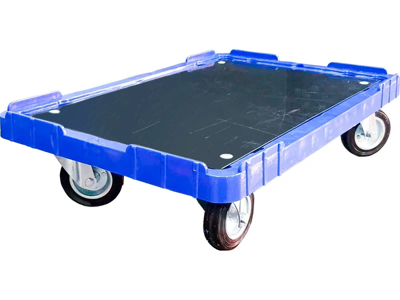 Тележка торговой марки Дигрус размером 600x400 мм выполнена из прочного металлического каркаса и оснащена четырьмя цельнолитыми резиновыми колесами. Окрашена в яркий синий цвет, привлекающая внимание и удобная в эксплуатации.
