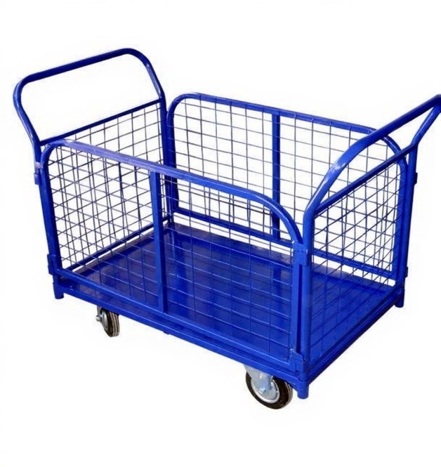 Тележка платформенная усиленная для предназначена для перемещения грузов на складе или производстве. Длинна платформы тележки 120 см. Каркас платфрменной тележки выполнен из крепкого стального прямоугольного профиля 30х20. Ручки тележки изготовлены из трубы ф25 мм. Борта выполнены из профильной трубы 20х20 с наполнением из трубки ф10 мм или мелаллической сетки. Полимерное порошковое покрытие, стойкое к механическим повреждениям, защищает металл от коррозии, устойчиво к перепадам температуры. Тележка платформенная, при использовании подходящих колесных опор, обеспечит высокую грузоподъемность, что увеличит диапазон условий её применения. Тележка практична и неприхотлива в эксплуатации. Поставляется в разобранном виде.