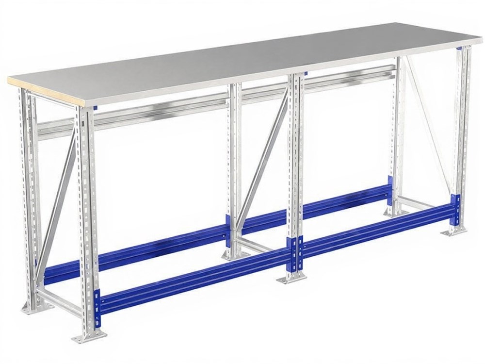 За счет единой опоры верстаки можно устанавливать в линии и секции.