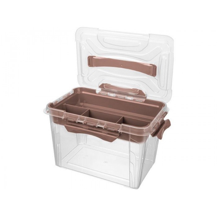Прозрачные стенки позволяют видеть содержимое, а встроенный органайзер помогает систематизировать мелкие предметы.
