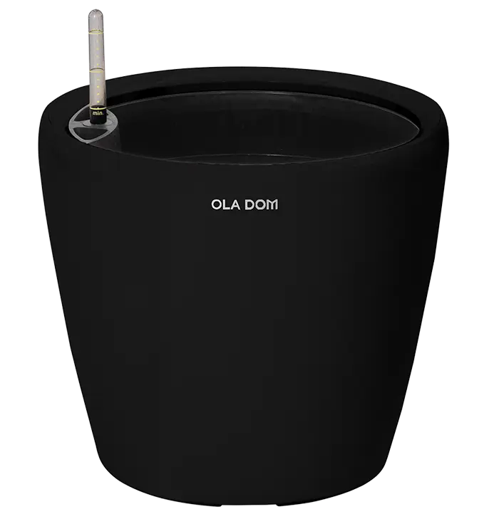 Кашпо DELUXE в чёрном цвете — лаконичное решение для оформления зелёных акцентов в интерьере и на открытом воздухе. Глубокий оттенок подчёркивает форму растений, создавая чёткий контур и визуальную опору в пространстве. Он легко сочетается с яркой листвой, светлыми стенами или природными материалами, сохраняя общую сдержанность композиции.