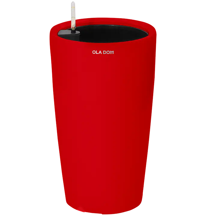 Широкое основание обеспечивает устойчивость даже при максимальной загрузке. Красный цвет позволяет создавать яркие композиции с декоративно-лиственными растениями, контрастной зеленью или светлыми фасадами.