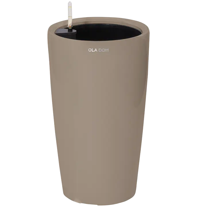 Оттенок мокко смотрится мягко и естественно, подчёркивая форму растений и не перегружая пространство. Глянцевая поверхность добавляет лёгкий визуальный блеск, легко очищается и долго сохраняет ухоженный вид. Материал — стеклонаполнённый полипропилен — устойчив к влаге, выцветанию и перепадам температуры, подходит для уличного и внутреннего размещения круглый год. Благодаря весу, высоте и широкой опоре модель остаётся устойчивой даже при сильном ветре или максимальной загрузке.
