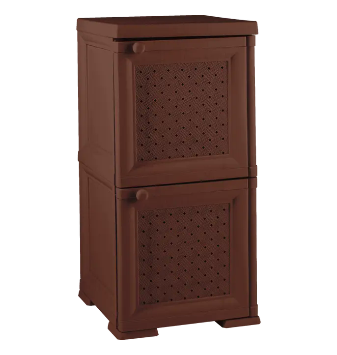 Компактный и практичный шкаф с двумя большими отделениями. Благодаря малым габаритам прекрасно смотрится в прихожей, ванной комнате, рабочем кабинете или в детской комнате. Также украсит любой интерьер загородного дома. Поверхность изделия имитирует натуральное дерево, дверцы украшены красивым дизайнерским узором. Распашные створки комфортно открываются благодаря надежным петлям и элегантным ручкам. Небольшой вес обеспечивает изделию мобильность: выполнить перестановку шкафа при необходимости сможет даже один человек.