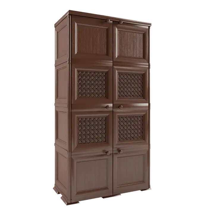 Несмотря на внушительные габариты, шкаф обладает достаточно легким весом для несложной перестановки вдвоем. Изделие устойчиво к повышенной влажности и температурным перепадам, невосприимчиво к большим нагрузкам благодаря крепкой конструкции. Высококачественные материалы, использованные при фабричной сборке, обеспечивают шкафу долговечность. Цвет не портится при уборке обычными бытовыми химическими средствами. Шкаф прочно удерживается на любой поверхности. Изделие доступно в трех цветовых решениях: в бежевом и древесном цветах, а также в цвете темного шоколада.