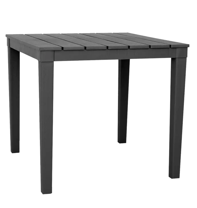 Простая конструкция стола поможет быстро собрать и разобрать стол без использования инструментов, что позволит при необходимости облегчить хранение стола вне сезона. Пластик способен выдерживать нагрузки до 100 кг без деформаций, образования трещин или сколов. Материал также устойчив к резким изменениям погодных условий и воздействию ультрафиолетовых лучей.