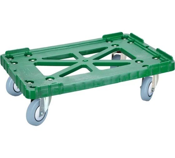 Тележка Дигрус предназначена для транспортировки всех возможных вариаций ящиков размером 600х400. Платформа выполнена из полиэтилена низкого давления. Тележка имеет три посадочных места для разных типов ящиков, усиленное место для крюка. Модель имеет 4 поворотных колеса. Тип колес:литые