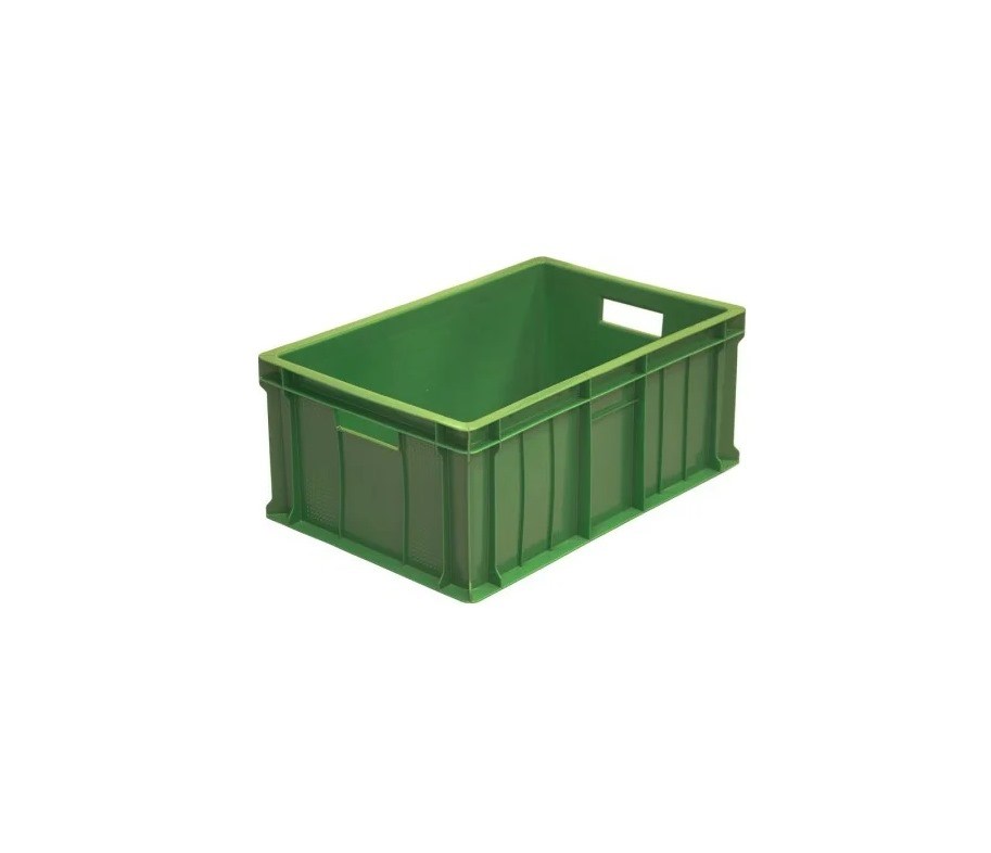 Ящик служит для хранения и перевозки мясной и любой иной продукции. Большое количество рёбер жесткости делает ящики устойчивыми к нагрузкам. Ящик выполнен из полиэтилена низкого давления (HDPE).